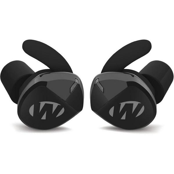 True wireless earbuds. They provide solid protection and decent amplification for the price, though they can struggle with wind noise.