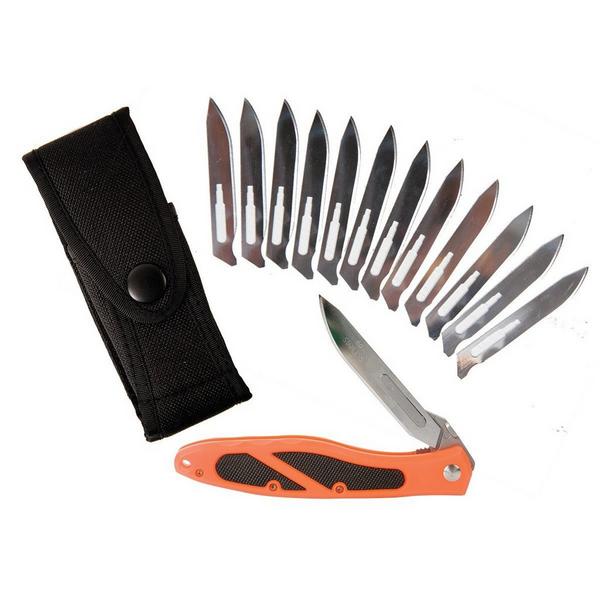 The original game changer. It weighs under 3 ounces and uses #60A scalpel blades. It's the top choice for 'backcountry' hunters who count every gram.